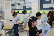 この日は、クイズを出して、1年生が楽しい思いをもてるようにしてくれていました。