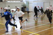 1~3年生と4~6年生にわかれて、体育館中を走り回っていました。
