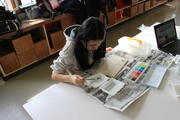 図工室で、6年生が、卒業記念作品のフォトフレームづくりをしていました。