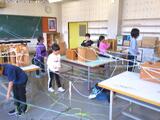 様々な種類のひもを使って、図工室内にひもをはりめぐらせました。