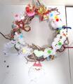 モールなどをつかいながら、クリスマスらしくなるように、飾りつけをしていました。